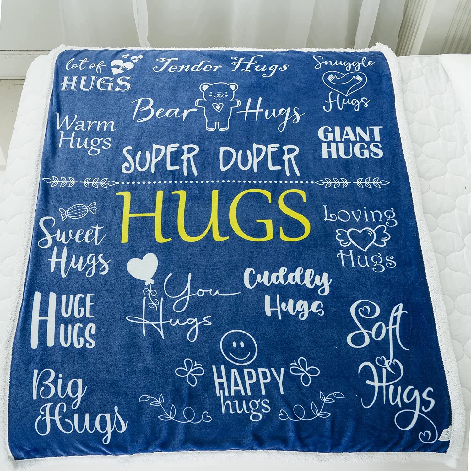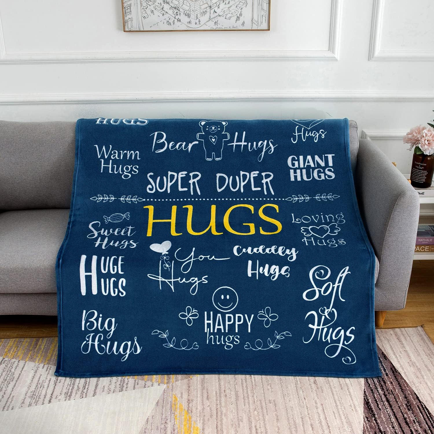 Our “Hugs” custom plush blankets let you speak your heart, show appreciation and remind your loved ones how much you love them. Whether they’re reading, watching the telly, lounging, or taking a nap, this comfortable and visually expressive blanket can help soothe their emotions, calm their soul, recharge their energy, and bring them the happiness they deserve.